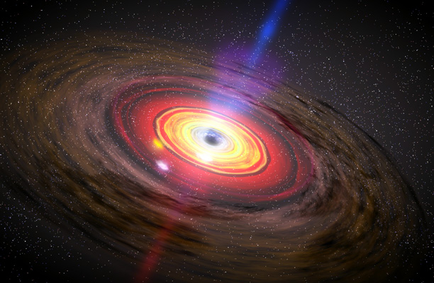 Artist’s impression of an X-ray binary containing a black hole (left) and a neutron star (right) swallowing gas from a companion star through an accretion disk. The insets show how the intensity of the emission varies strongly as the inner disk cyclically empties and re-fills. Whereas the timescales are different for the two objects, the underlying mechanism is thought to be the same. Image credit: Gabriel Pérez Díaz (IAC).
